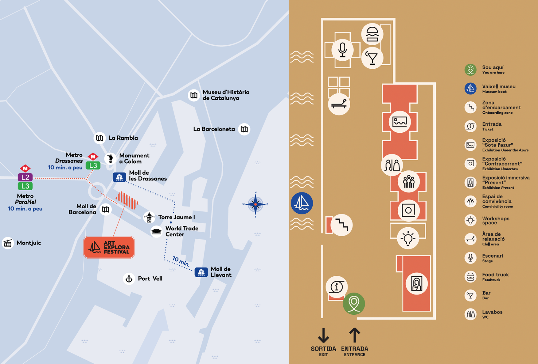 Tot el recinte del Festival és accessible per a persones amb mobilitat reduïda, i les cadires de rodes són benvingudes a bord del vaixell-museu. El Festival Art Explora treballa per ser accessible a totes les persones amb discapacitat. Per a qualsevol necessitat específica (mobilitat, discapacitat sensorial, cognitiva o invisible, o assistència durant la visita), adreceu-vos a un dels nostres membres del personal, que us atendran amb molt de gust.