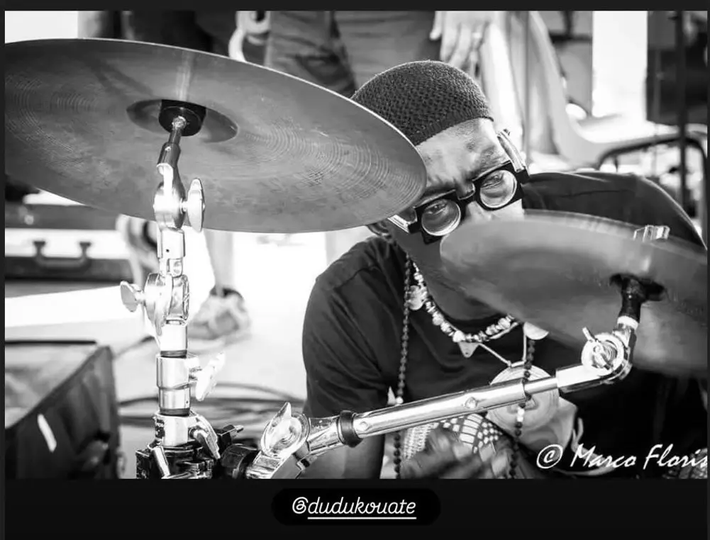 Né en 1963 à Dakar dans une famille de griots, le chanteur et percussionniste Dudù Kouate est un ardent défenseur de la tradition musicale ouest-africaine. Il joue au total de plus de 200 instruments : djembé, tama, calebasse, kanjira, sifflets, carillons, cloches, ngoni… Il chante principalement en wolof, sa langue maternelle, mais également en bambara — la langue du groupe ethnique bambara d’Afrique de l’Ouest — ainsi qu’en italien, français et anglais.