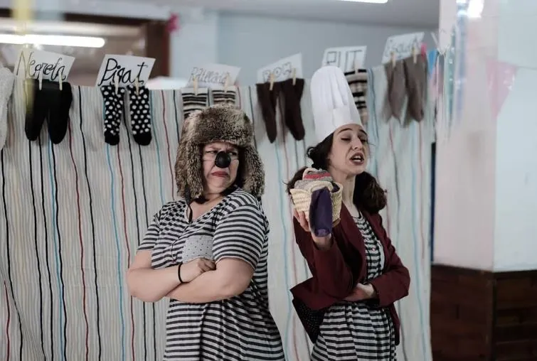 La Mitja et La Mitjoneta sont les personnages principaux qui guident et apparaissent dans chaque production. Elles jouent des rôles complémentaires et se transforment en les personnages spécifiques de chaque histoire qu’elles interprètent.